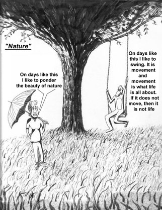 | Surreal City Comic Pages 9th Comic "Nature" Below is the 8 panel comic "Nature" to be viewed left to right and then down to the next row of left to right. Enjoy viewing the art. Copyright 1994-2003 Gil Richmond